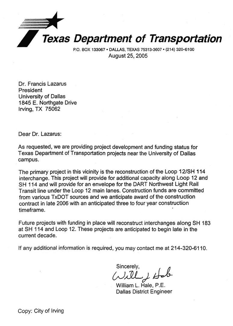 The City of Irving, the Texas Department of Transportation (TxDOT), and the Dallas Area Rapid Transit Authority (DART) have over $1 billion of fully funded transportation improvements scheduled for the area; $700 million of these improvements will directly benefit the site and are to be completed well before the completion of any development at the stadium site.